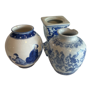 Blue Transferware cachepot trio